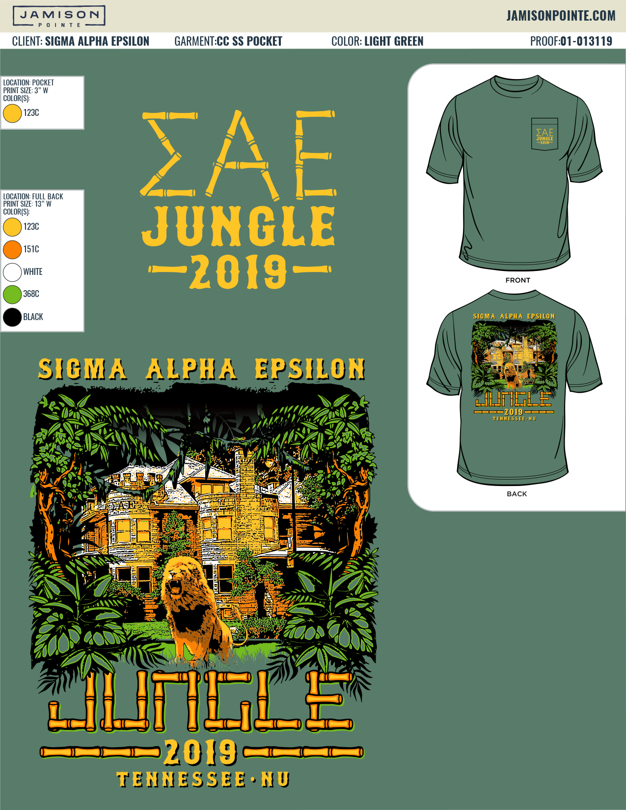 Available in Comfort Colors Short Sleeve Pocket T's. Light Green. Distributed by the SAE T-Shirt Chair. ENJOY!