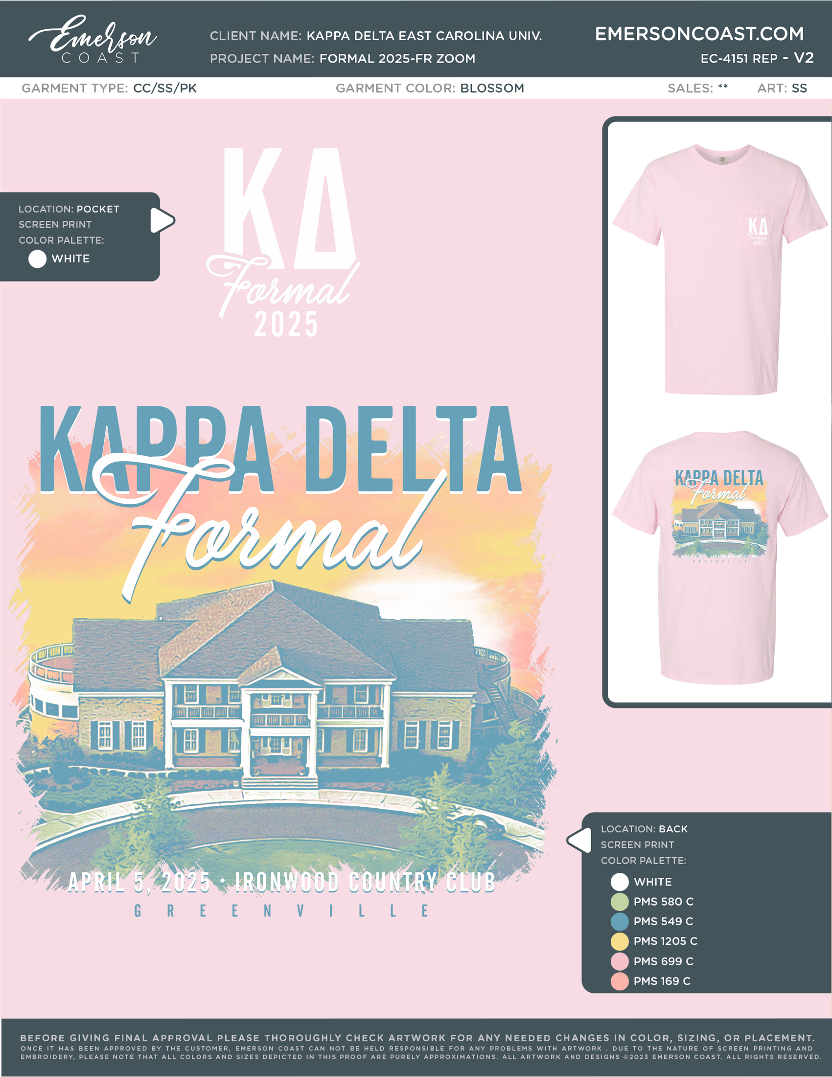 Available in comfort color pocket tee in blossom.