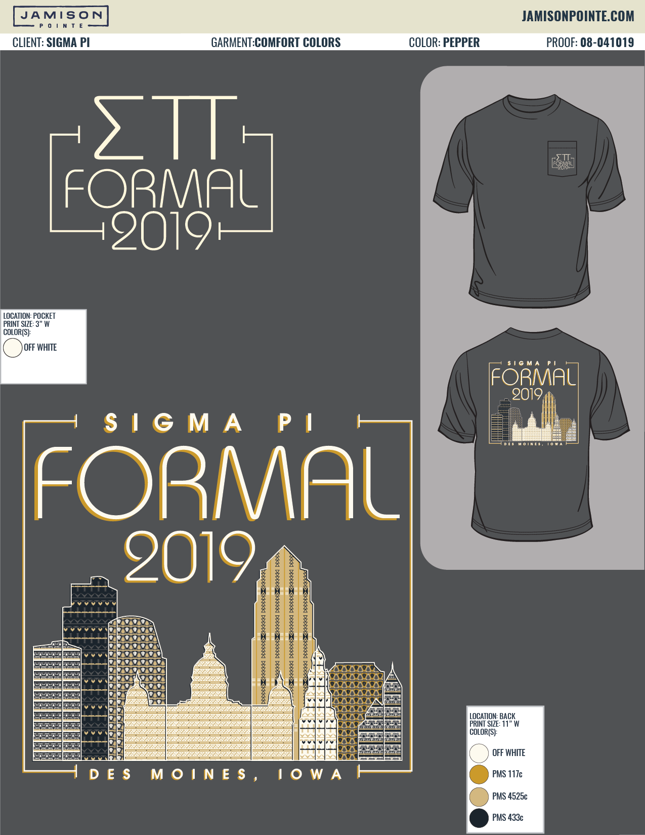 Available in Comfort Colors Short Sleeve Pocket T's in Pepper and Blue Spruce. Individually Bagged and Tagged. Distributed by the Sigma Pi Apparel Chair. ENJOY!
